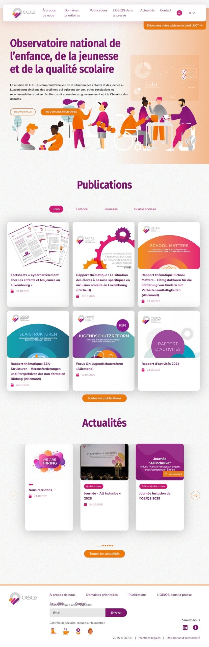 The National Observatory for Children, Youth and School Quality (OEJQS) analyses the educational situation in Luxembourg, evaluates quality, and provides recommendations to the Luxembourg government and the Chamber of Deputies. Many of their publications are also available on their website.